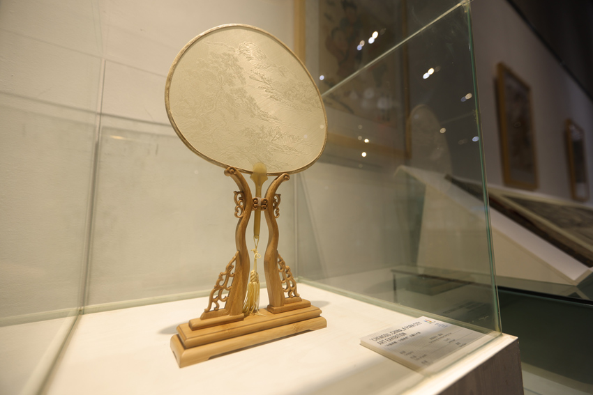A delicate Zigong Gong fan at an art exhibition held at the Universiade Village in Chengdu, southwest China's Sichuan Province. The techniques of making Gong fans were listed as a national intangible cultural heritage item in China. (Photo courtesy of ZGBCTV)