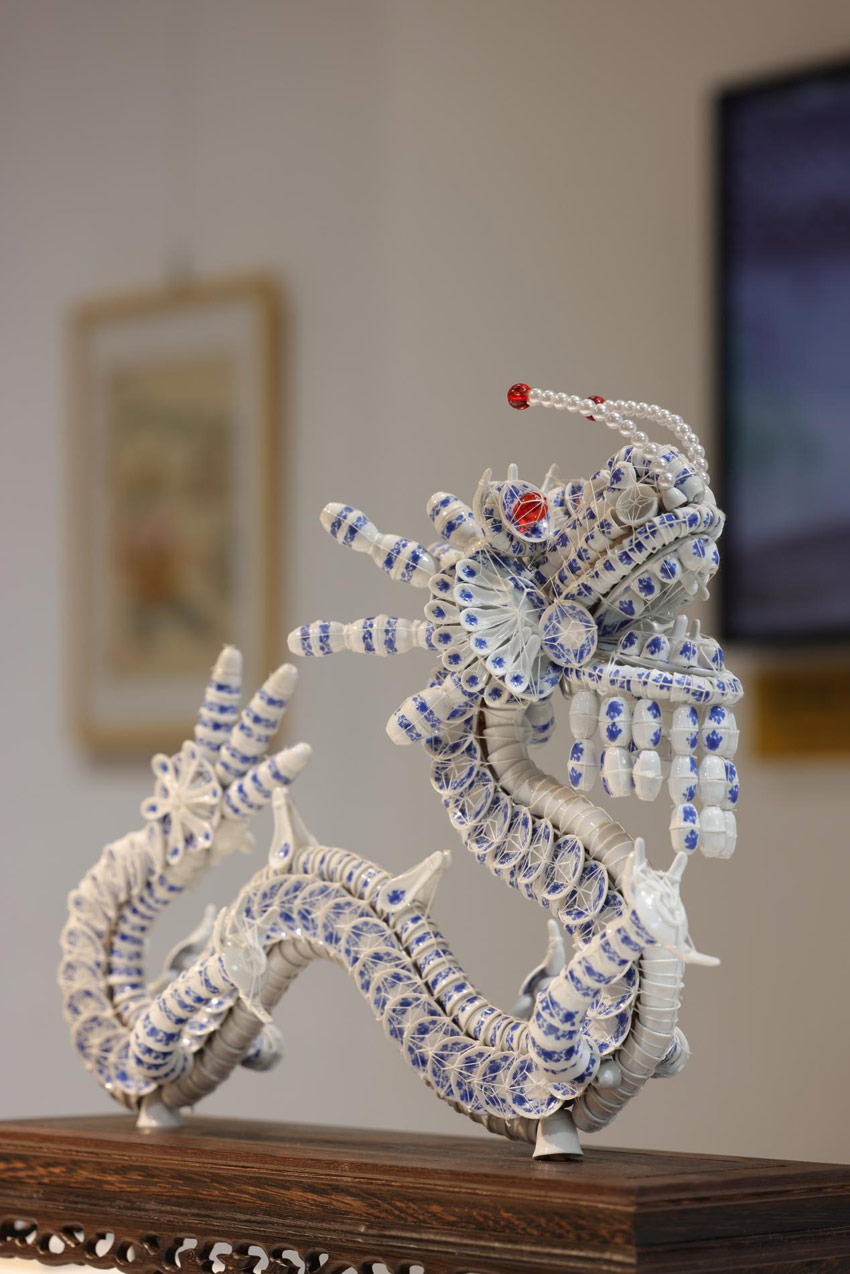 A Zigong porcelain lantern at an art exhibition held at the Universiade Village in Chengdu, southwest China's Sichuan Province. (Photo courtesy of ZGBCTV)