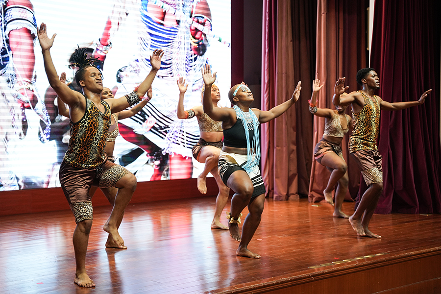 Performers from the Elvis Sibeko Dancing Group perform during the 2023 China-South African Friendship Night in Beijing on July 27, 2023. (People's Daily Online/Peng Yukai)
