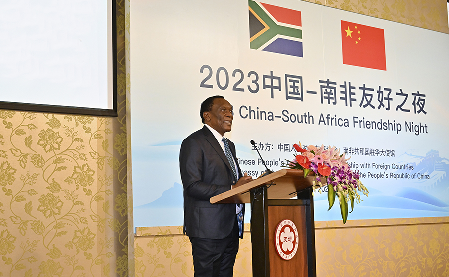 Siyabonga Cyprian Cwele, South African ambassador to China, delivers a speech during the reception of the 2023 China-South African Friendship Night in Beijing on July 27, 2023. (Photo provided by the Chinese People's Association for Friendship with Foreign Countries)