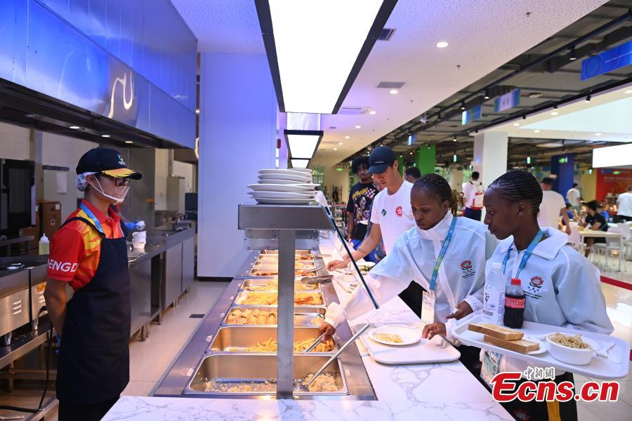 Foreign athletes dine at a hall of the FISU Games Village in Chengdu, Southwest China's Sichuan Province, July 27, 2023. (Photo: China News Service/Chen Chao)