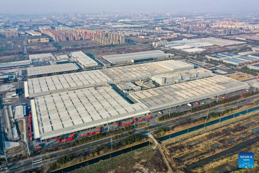 This aerial photo taken on Feb. 15, 2023 shows a factory of Chinese electric vehicle (EV) maker Li Auto Inc. in Changzhou, east China's Jiangsu Province. The Yangtze River Economic Belt is an important gathering place for the automobile industry, bringing together a large number of automobile brands and manufacturers, which helps China's new energy vehicle industry move to a new stage of large-scale and global development, and also adds new impetus to the high-quality development of the Yangtze River Economic Belt. (Xinhua/Li Bo)