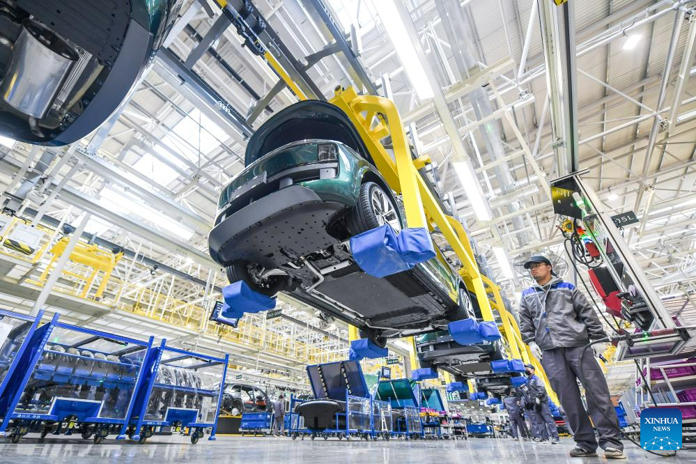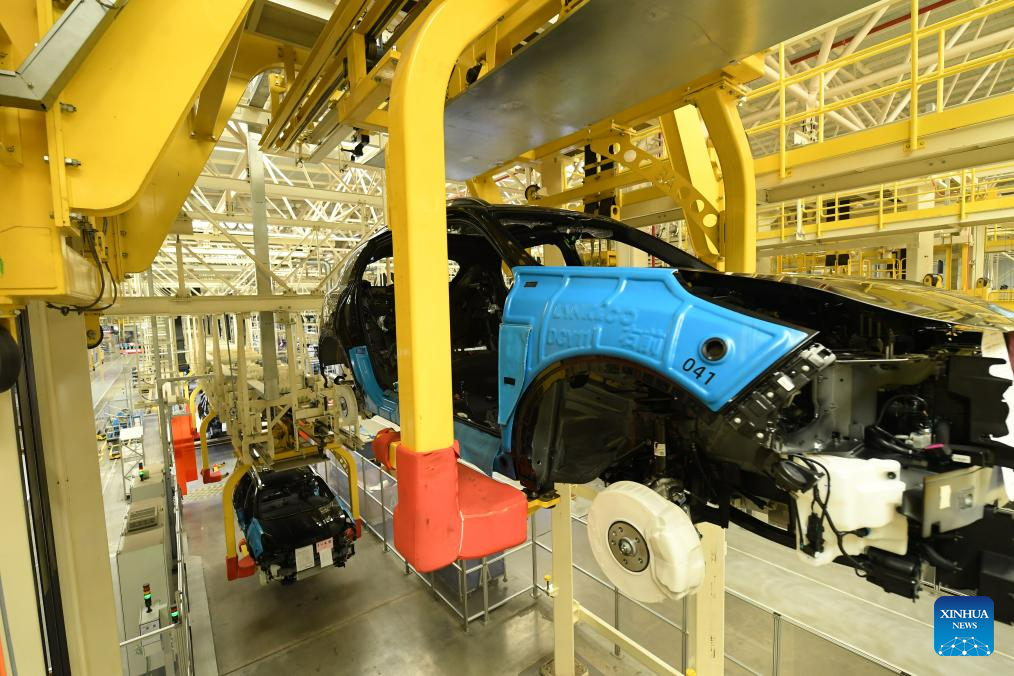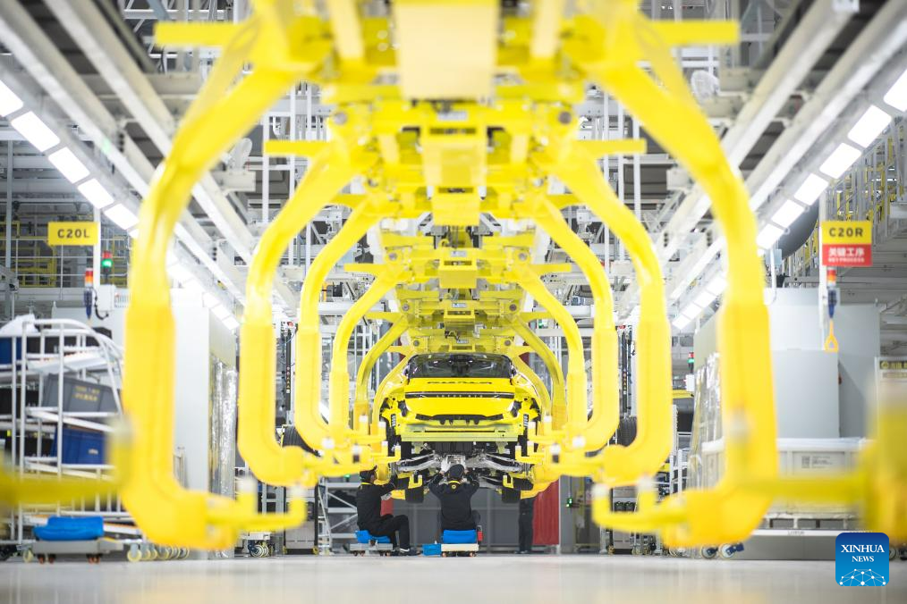 This photo taken on April 11, 2023 shows a Lynk &Co assembly workshop in Yuyao, east China's Zhejiang Province. The Yangtze River Economic Belt is an important gathering place for the automobile industry, bringing together a large number of automobile brands and manufacturers, which helps China's new energy vehicle industry move to a new stage of large-scale and global development, and also adds new impetus to the high-quality development of the Yangtze River Economic Belt. (Xinhua/Weng Xinyang)