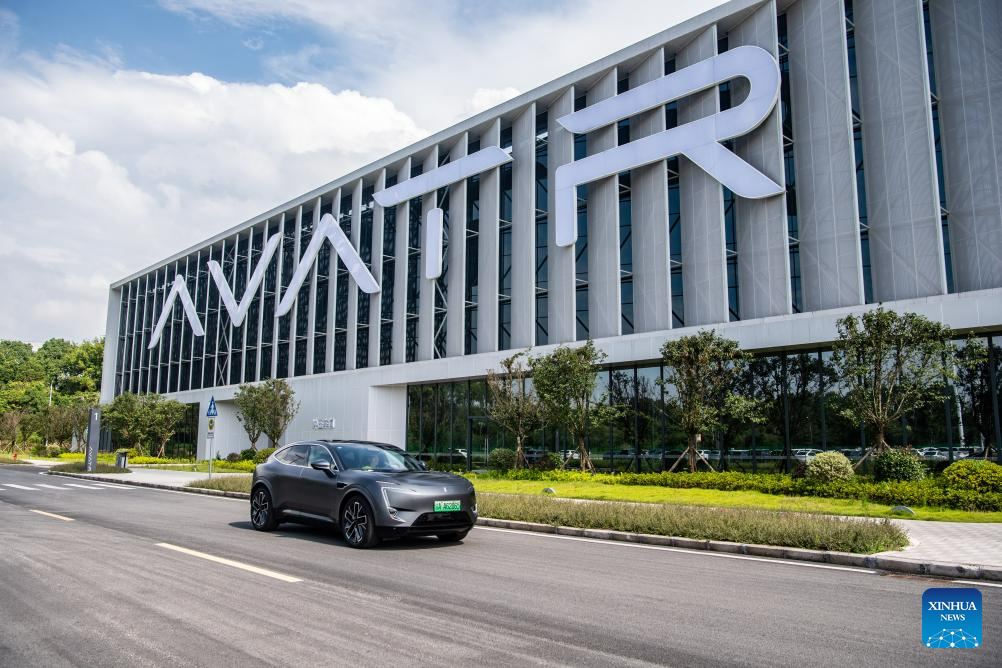 A new energy vehicle is seen on the road in Jiangbei District of southwest China's Chongqing, July 20, 2023. The Yangtze River Economic Belt is an important gathering place for the automobile industry, bringing together a large number of automobile brands and manufacturers, which helps China's new energy vehicle industry move to a new stage of large-scale and global development, and also adds new impetus to the high-quality development of the Yangtze River Economic Belt. (Xinhua/Tang Yi)