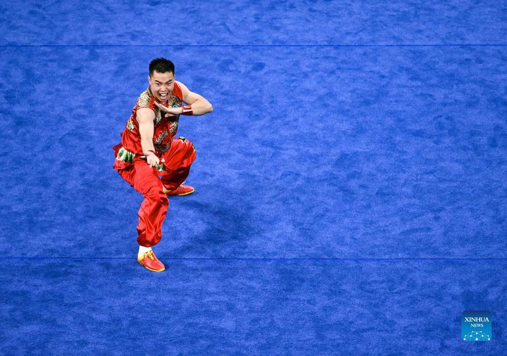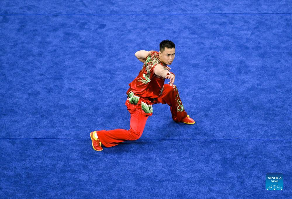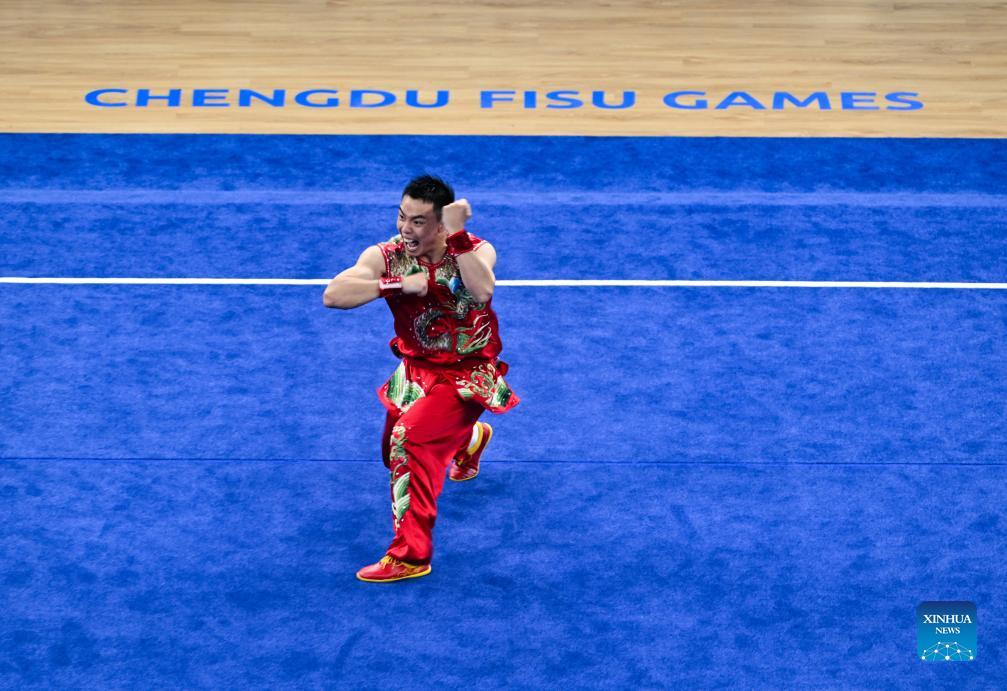 Cao Maoyuan of China competes during the Wushu Men's Nanquan at the 31st FISU Summer World University Games in Chengdu, southwest China's Sichuan Province, July 29, 2023. (Xinhua/Wang Xi)