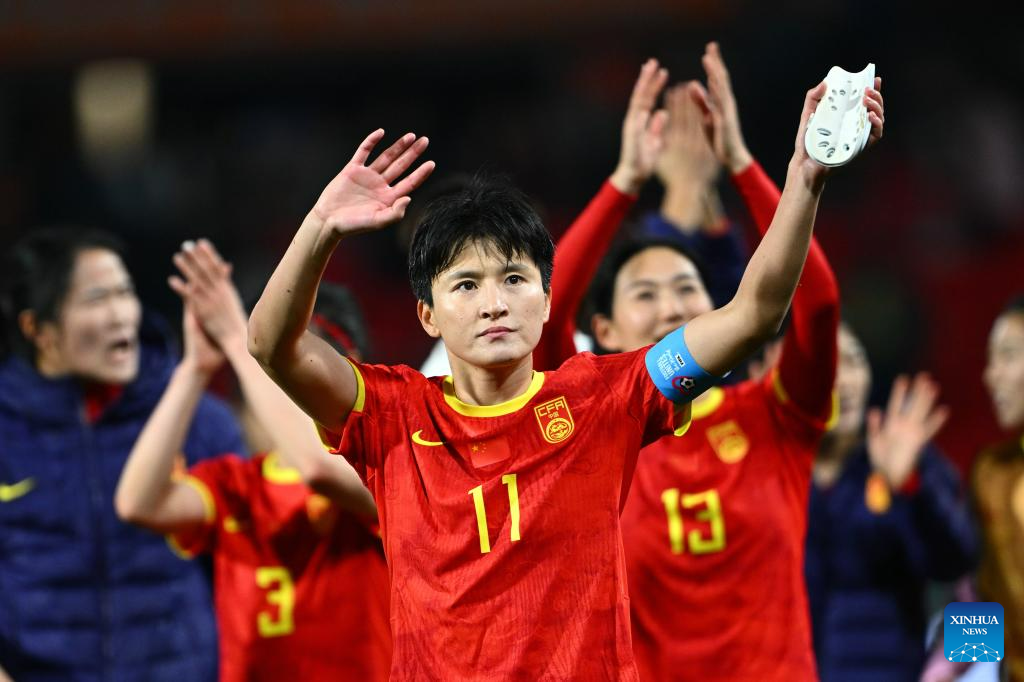 Wang Shanshan of China waves to the spectators after the group D match between China and Haiti at the 2023 FIFA Women's World Cup in Adelaide, Australia, July 28, 2023. (Xinhua/Li Yibo)