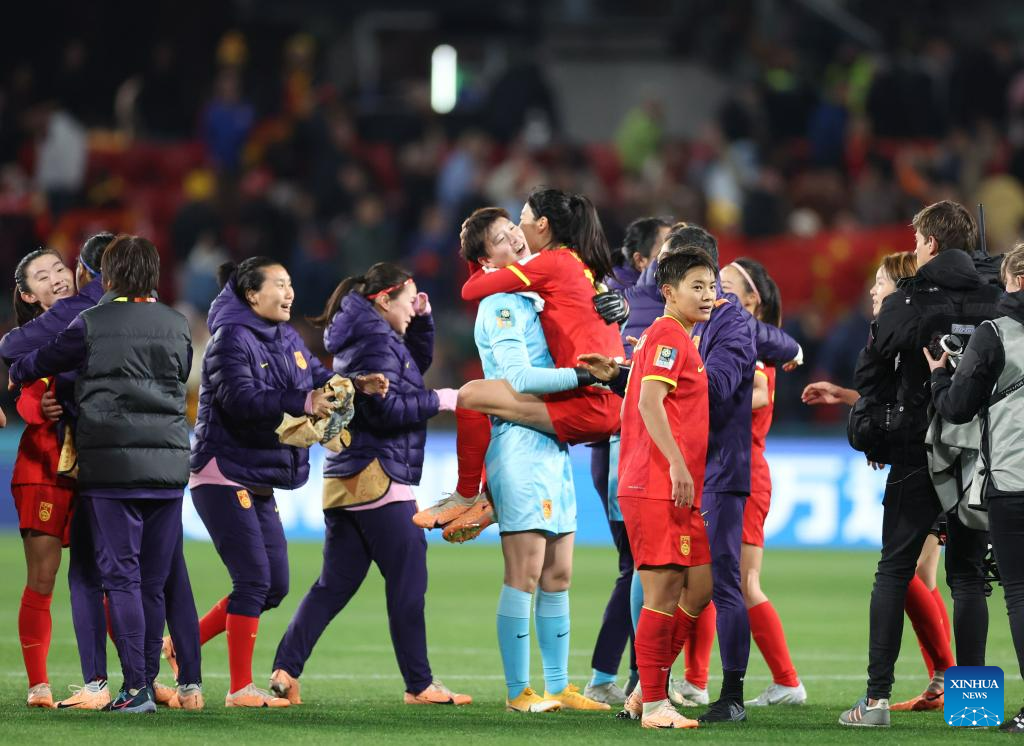 Players of China celebrate after the group D match between China and Haiti at the 2023 FIFA Women's World Cup in Adelaide, Australia, July 28, 2023. (Xinhua/Zhang Chen)
