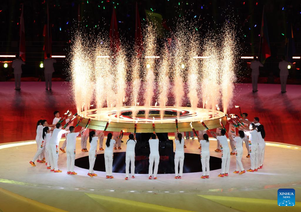 As the ceremony started, the vibrant dance of young volunteers and the cheers from the crowd during the parade of athletes further enhanced the enthusiasm in the stadium. After the gala performance, the cauldron-lit ceremony titled "Young Dream Achievers" was in the limelight.