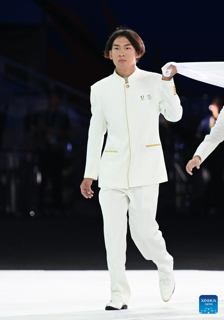 CHENGDU, July 28 (Xinhua) -- China's teenage snowboarding sensation Su Yiming, who captured the Big Air title at Beijing 2022, was a notable presence at the Chengdu Universiade opening ceremony on Friday evening, serving as one of the FISU flag bearers.