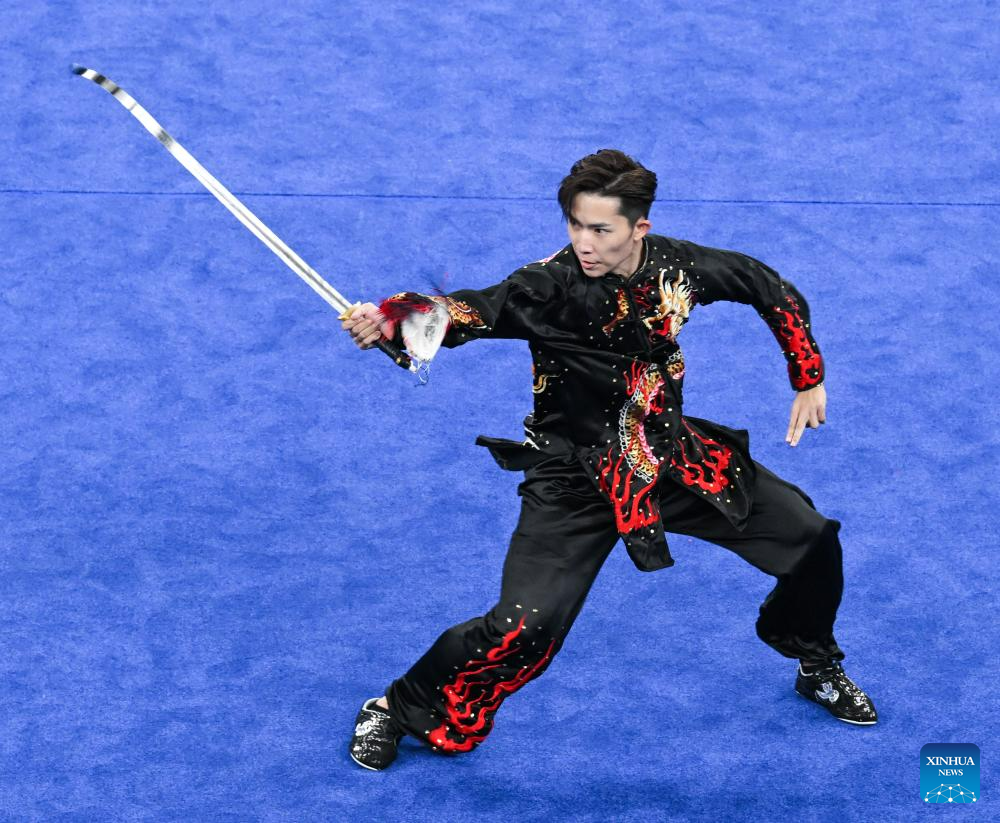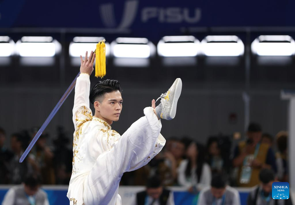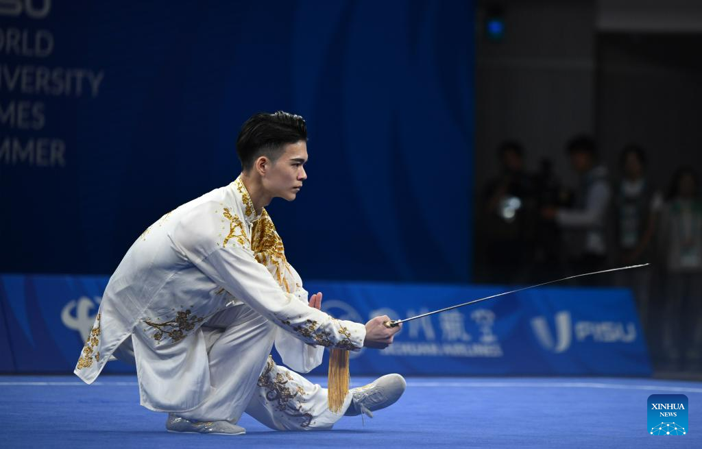 Hui Tak Yan Samuei of China's Hong Kong competes during the Wushu Men's Taijijian at the 31st FISU Summer World University Games in Chengdu, southwest China's Sichuan Province, July 29, 2023. (Xinhua/Wang Xi)