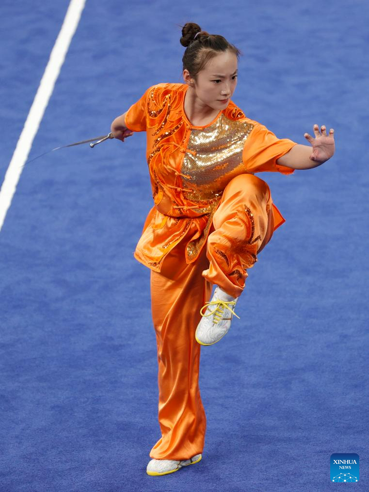 Song Cuifang of China competes during the Wushu Women's Nandao at the 31st FISU Summer World University Games in Chengdu, southwest China's Sichuan Province, July 29, 2023. (Xinhua/Shen Bohan)