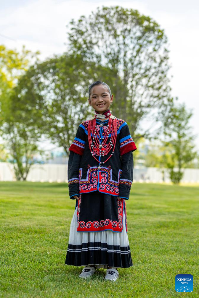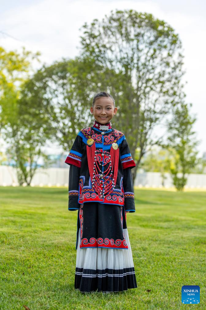 Jiduoshila poses for a photo prior to a rehearsal of the opening ceremony in Chengdu of southwest China's Sichuan Province, on July 23, 2023. (Xinhua/Shen Bohan)