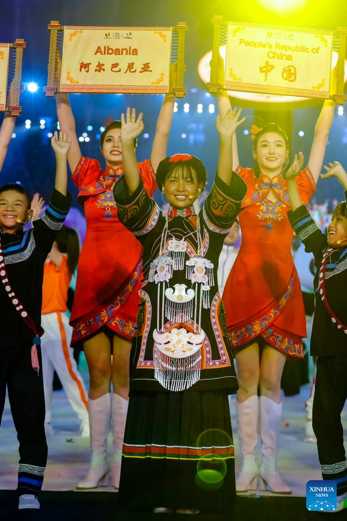 Jihaoyouguo (C) participates in the opening ceremony in Chengdu of southwest China's Sichuan Province, on July 28, 2023. (Xinhua/Chen Zeguo)