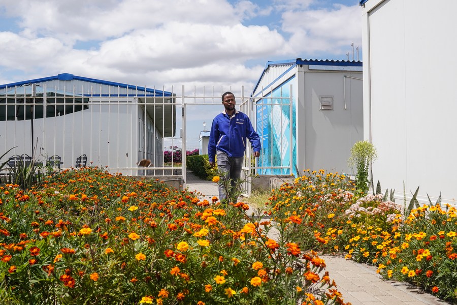 David Maina Kamore walks at the camp of the construction site of Konza transformer substation in Machakos County, Kenya, June 12, 2023. (Xinhua/Han Xu)