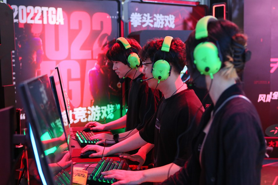 Visitors experience a game during the ChinaJoy 2023 in Shanghai, east China, July 28, 2023. (Xinhua/Xin Mengchen)