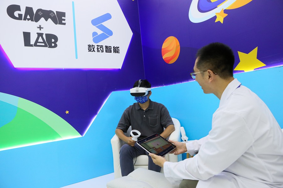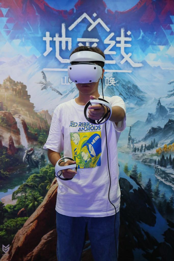A visitor experiences a VR game during the ChinaJoy 2023 in Shanghai, east China, July 28, 2023. (Xinhua/Xin Mengchen)
