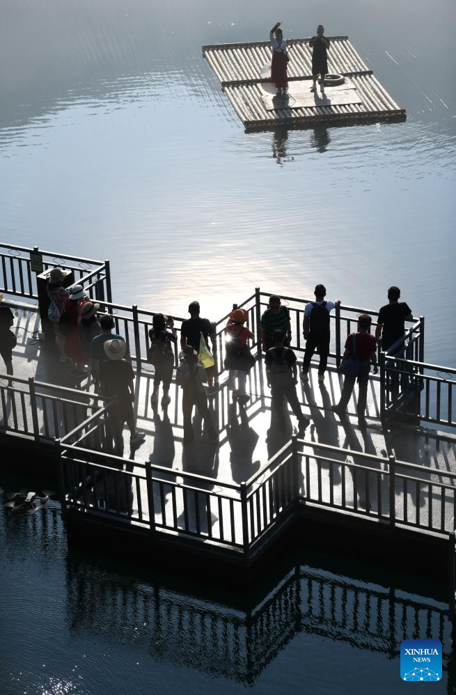 People visit the Dongjiang Lake scenic spot in Zixing City, central China's Hunan Province, July 26, 2023. (Xinhua/Zhao Zhongzhi)