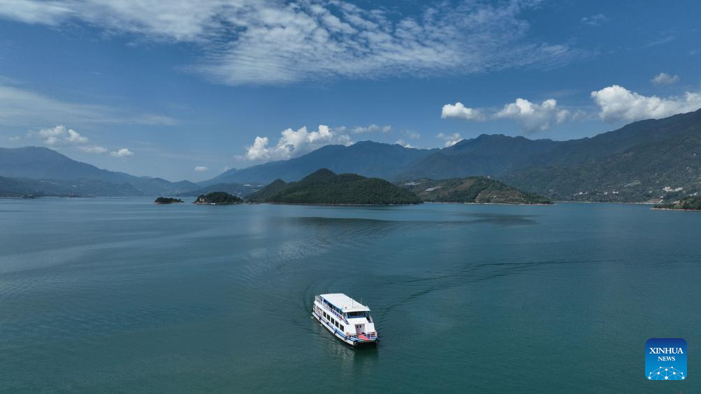 Tourists visit Dongjiang Lake scenic spot in Hunan