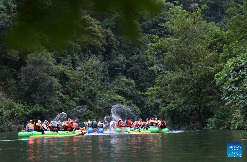Visitors experience drifting at the Dongjiang Lake scenic spot in Zixing City, central China's Hunan Province, July 27, 2023. (Xinhua/Zhao Zhongzhi)