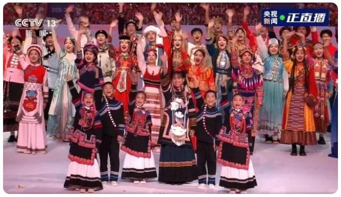 Jihao Youguo performs with a choral group at the "Young Dream Chasers" gala during the opening ceremony of the Chengdu World University Games, July 28, 2023. [Photo/Screenshot from CCTV Live]
