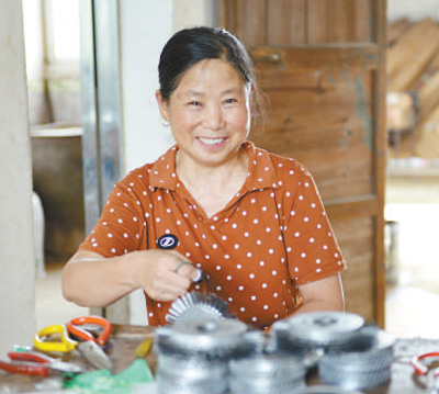 A villager makes brushes at home. (Photo courtesy of Yuantan town)