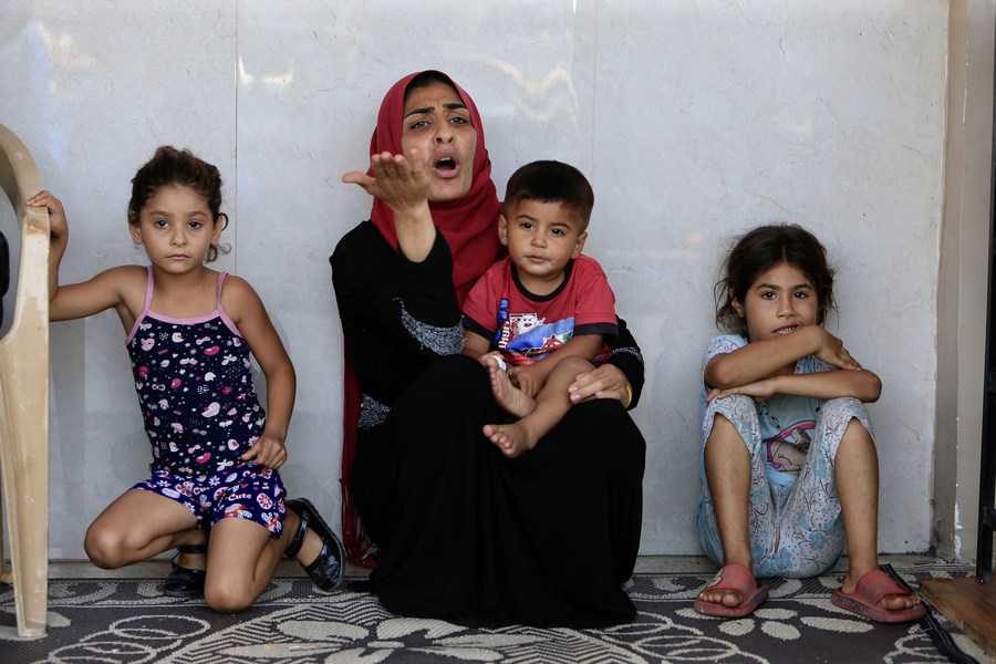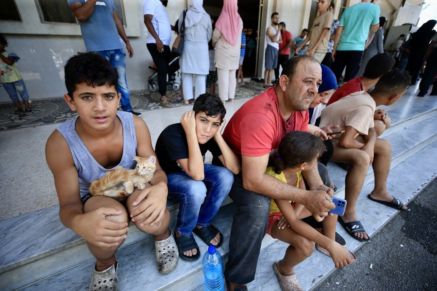Palestinians flee from the clashes between Fatah movement and Islamic militants in Ain Al-Helweh Palestinian refugee camp near Sidon, south Lebanon, on July 30, 2023. (Photo by Ali Hashisho/Xinhua)