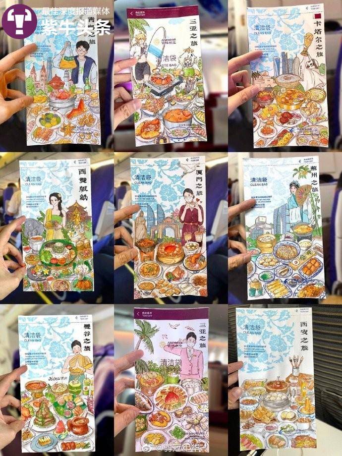His pictures drew increasing attention, and some airline stewardesses have even become fans of his. "I have been recognized by airline stewardesses several times recently. Sometimes, they would give me more paper garbage bags or paper cups to draw cartoons on," the illustrator said.