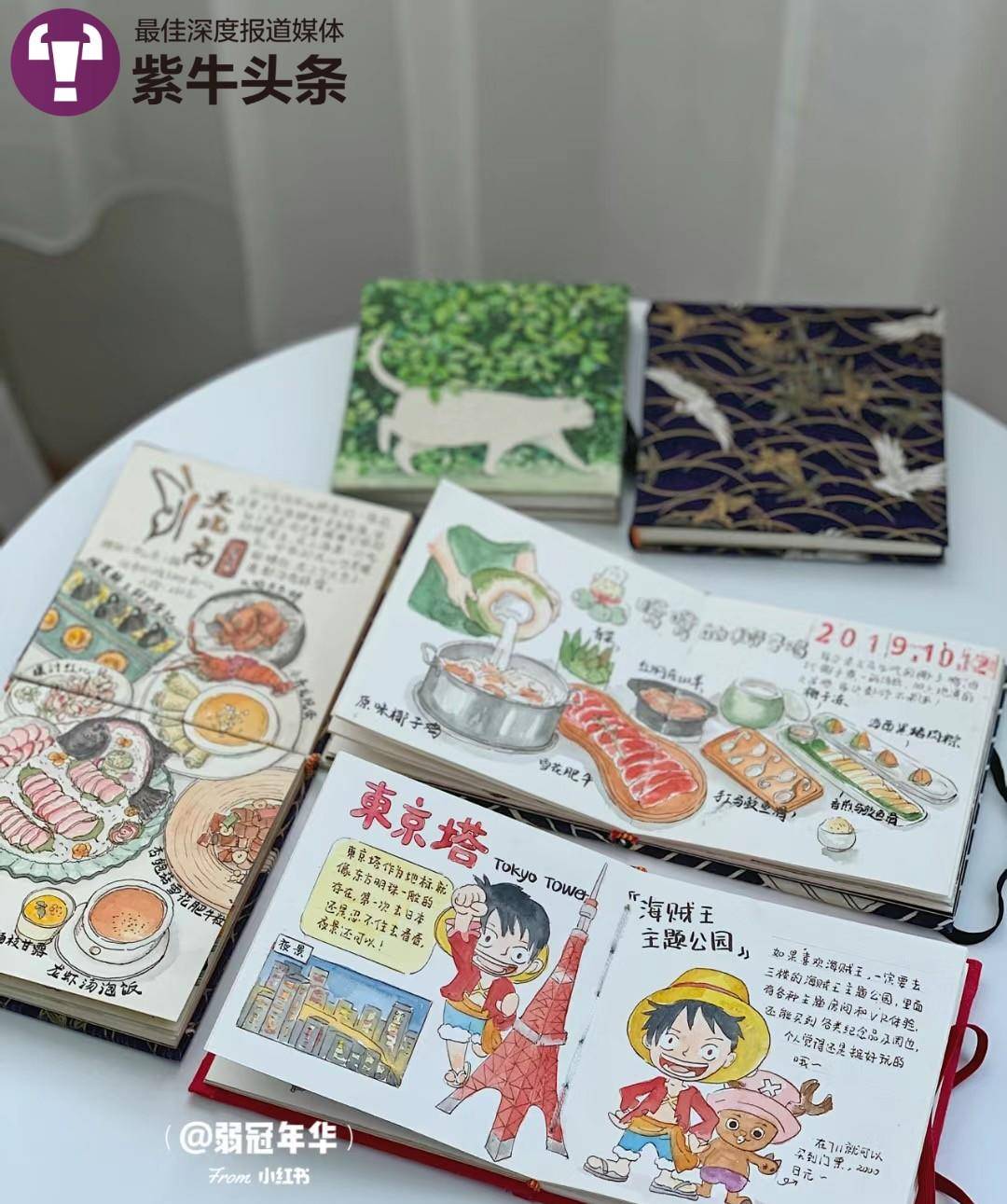 Photo shows travel journals created by a young illustrator who calls himself "Ruoguan Nianhua" online. (Photo/yangtse.com)
