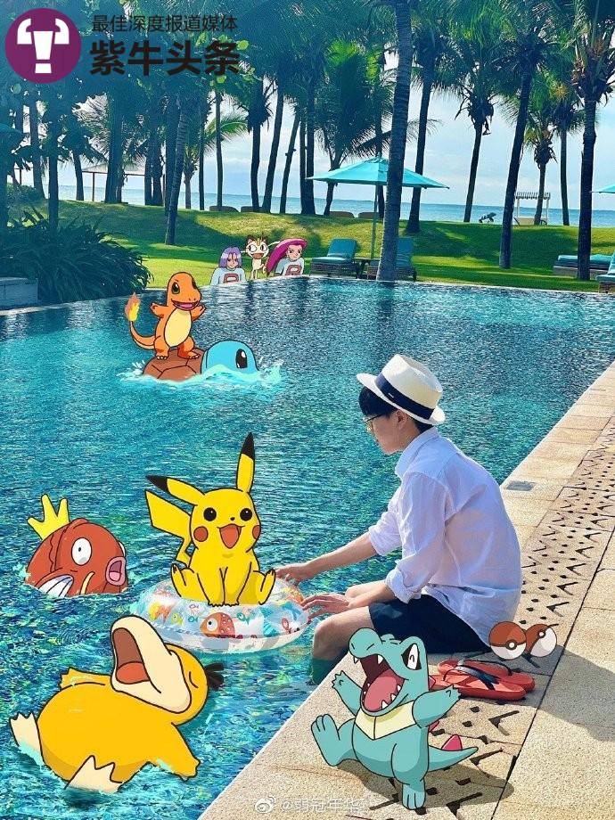 The illustrator has also created a large number of works that integrate photos of himself with hand-drawn cartoon characters and posted them online.