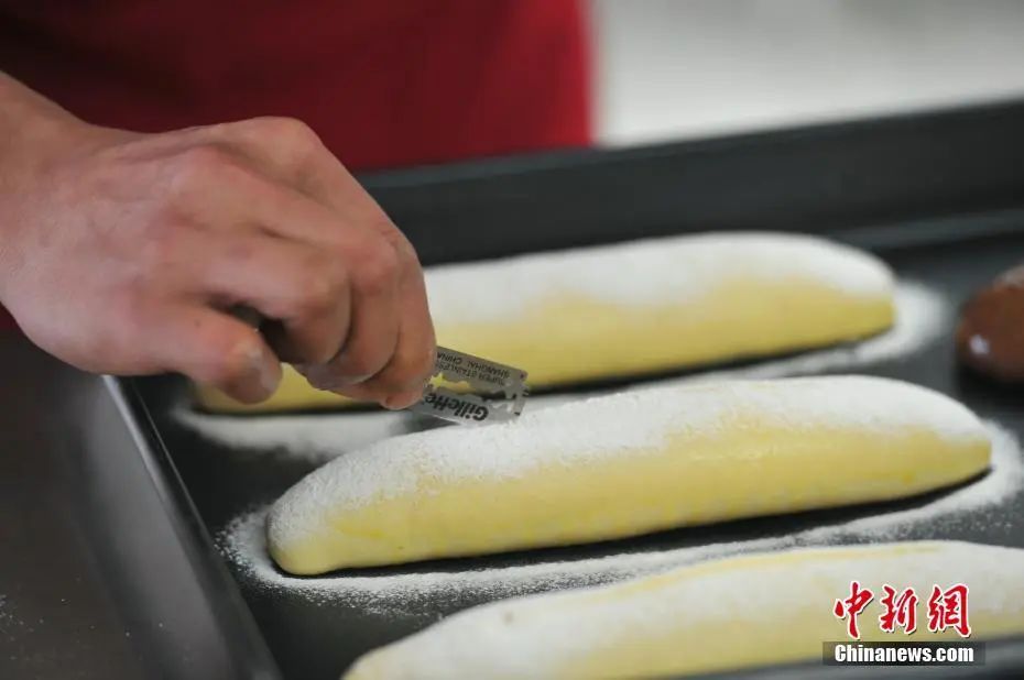 A baker makes bagels at a bakery in Zixi county, east China's Jiangxi Province. (Chinanews.com/Liu Zhankun)