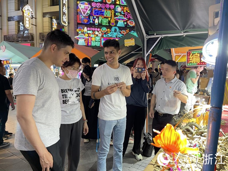 The research group first visited the bustling Hangzhou Wulin Night Market. Douglas Dueno, a U.S. foreign expert for China Daily, said, "The Wulin Night Market is vibrant, and the air is filled with the aroma of various types of food. Countless stalls full of diverse goods entice tourists to browse and shop. I was deeply impressed by the traditional handicrafts and the spectacular performances of street performers."
