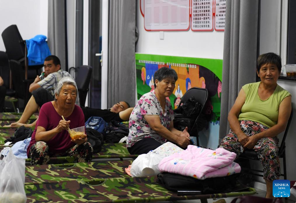 Flood-affected villagers rest at a temporary shelter in Shangwan Village of Qinglonghu Town, Fangshan District, Beijing, capital of China, Aug. 1, 2023. Several districts in the city, including the hardest-hit Fangshan and Mentougou, maintained the highest-level alert for flood control on Tuesday, as downpours will continue, the city's flood control authorities said. (Xinhua/Zhang Chenlin)