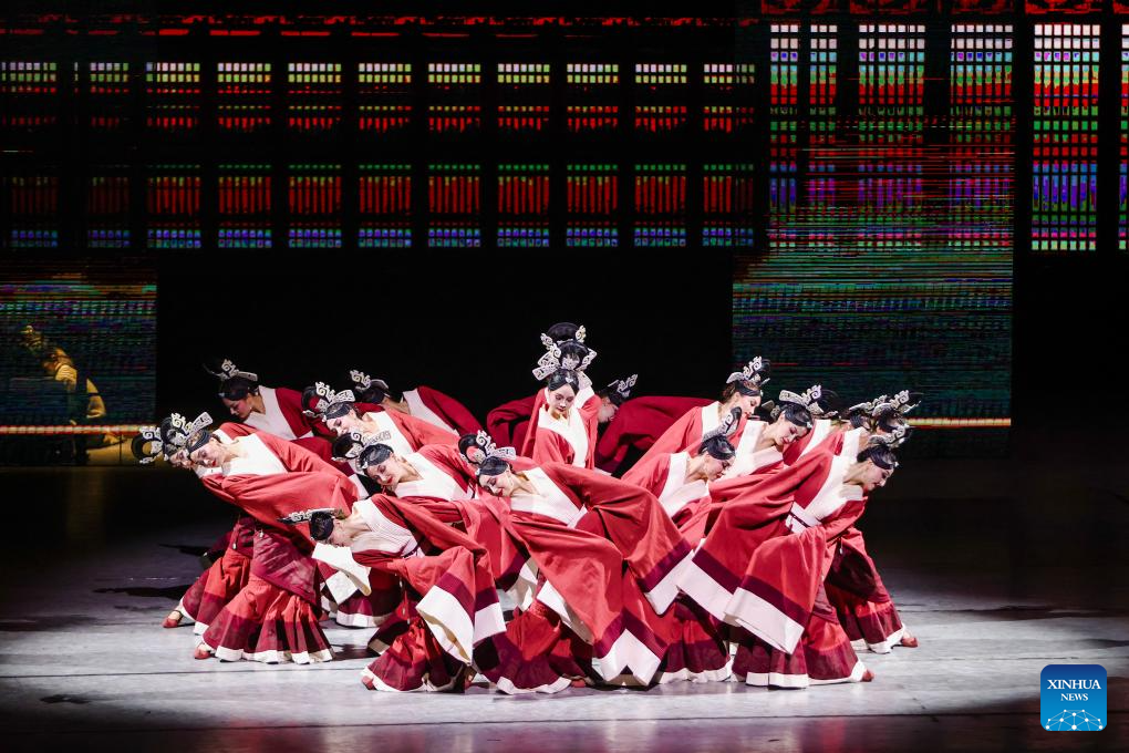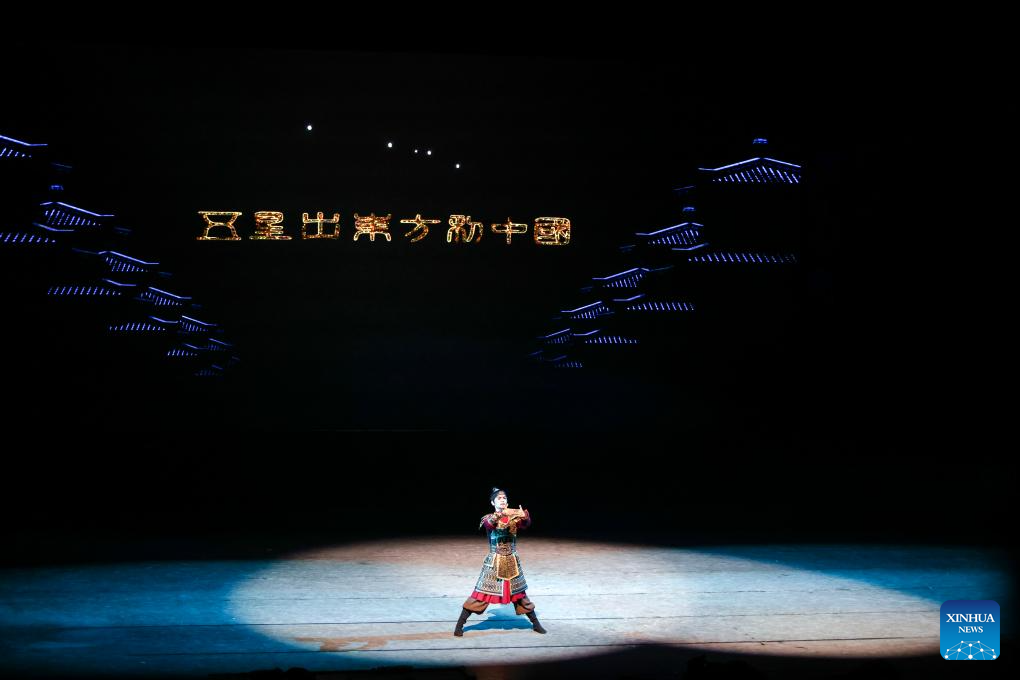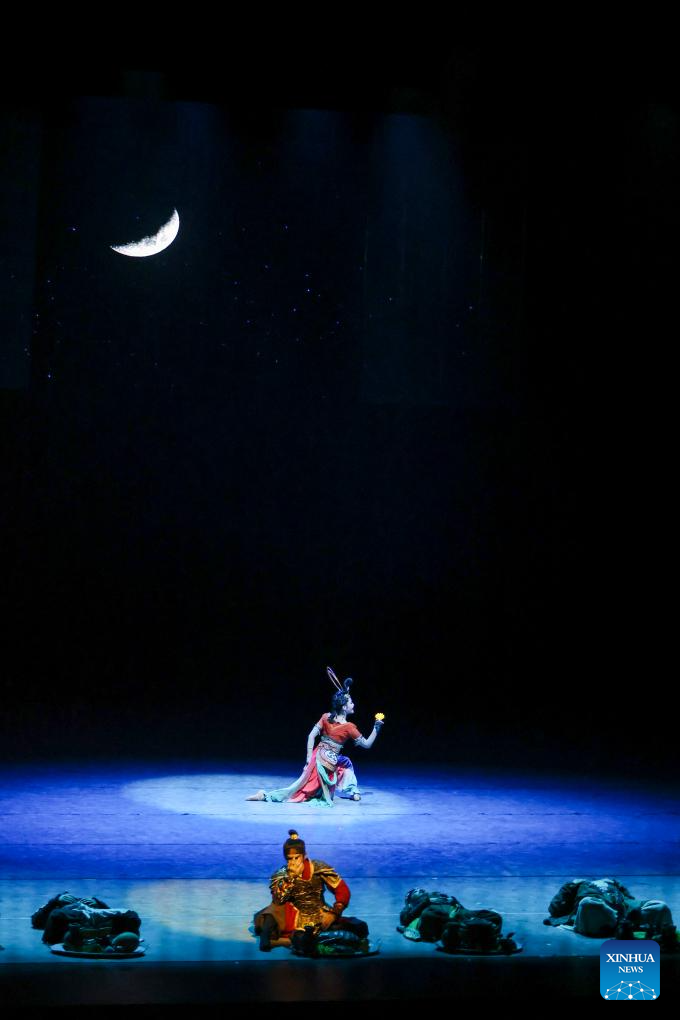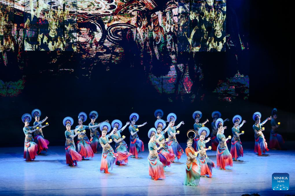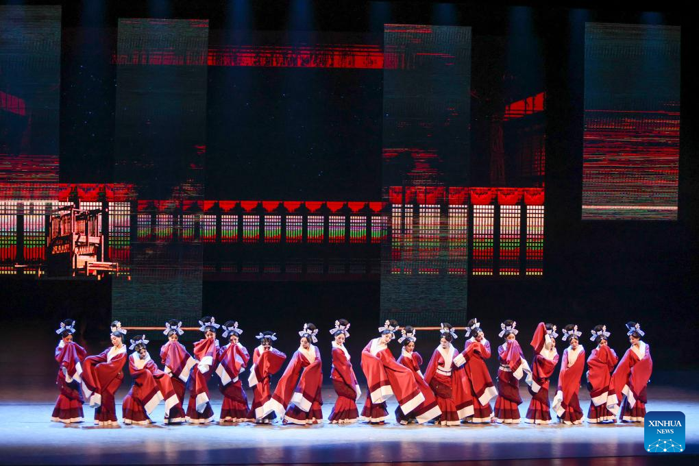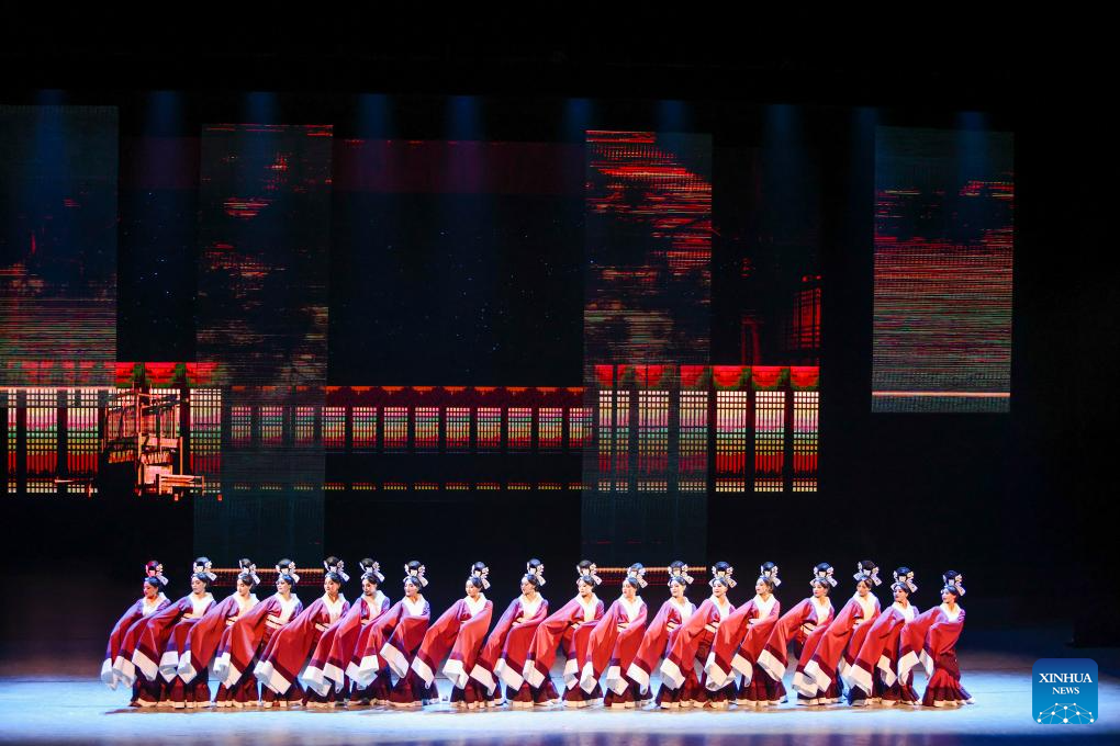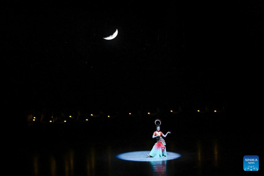 Dancers of a song and dance troupe from Hotan Prefecture perform a dance drama at a theater in Urumqi, northwest China's Xinjiang Uygur Autonomous Region, July 31, 2023. The dance drama was presented during the 6th China Xinjiang International Dance Festival. (Xinhua/Hao Zhao)