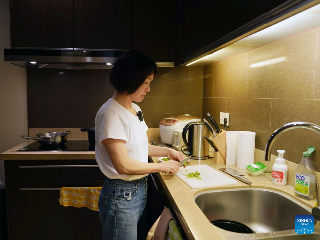Zhu Chunnan prepares lunch at her employer's home in east China's Shanghai, July 29, 2023. (Xinhua/Liu Ying)
