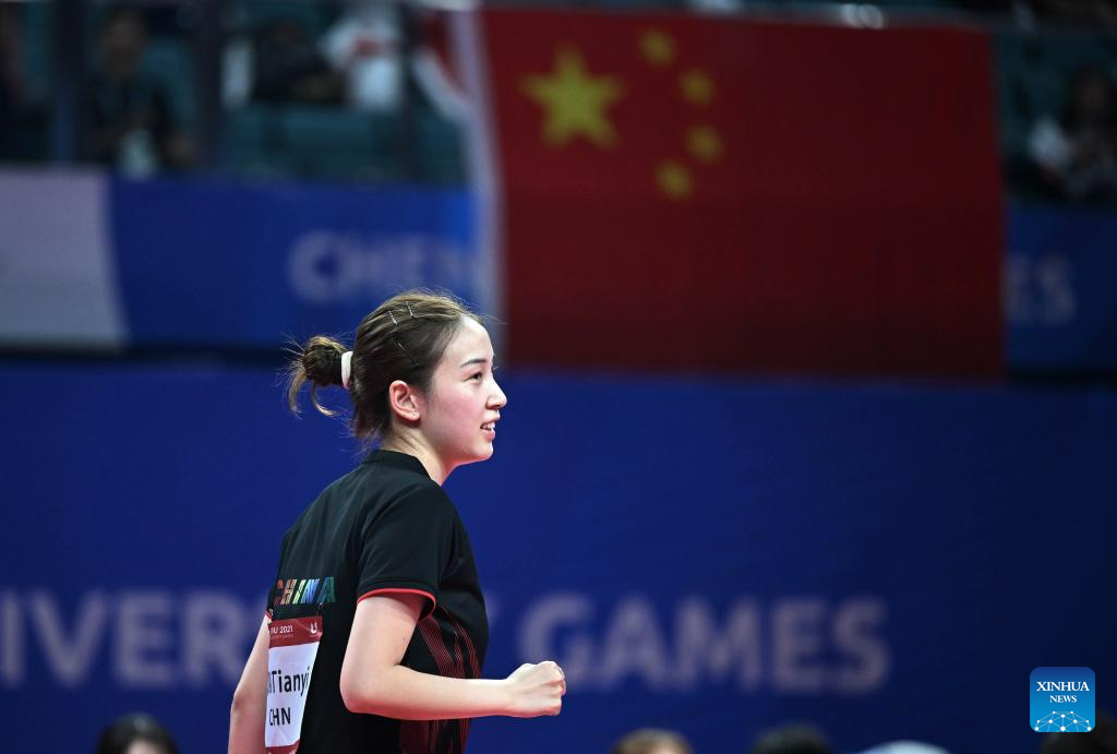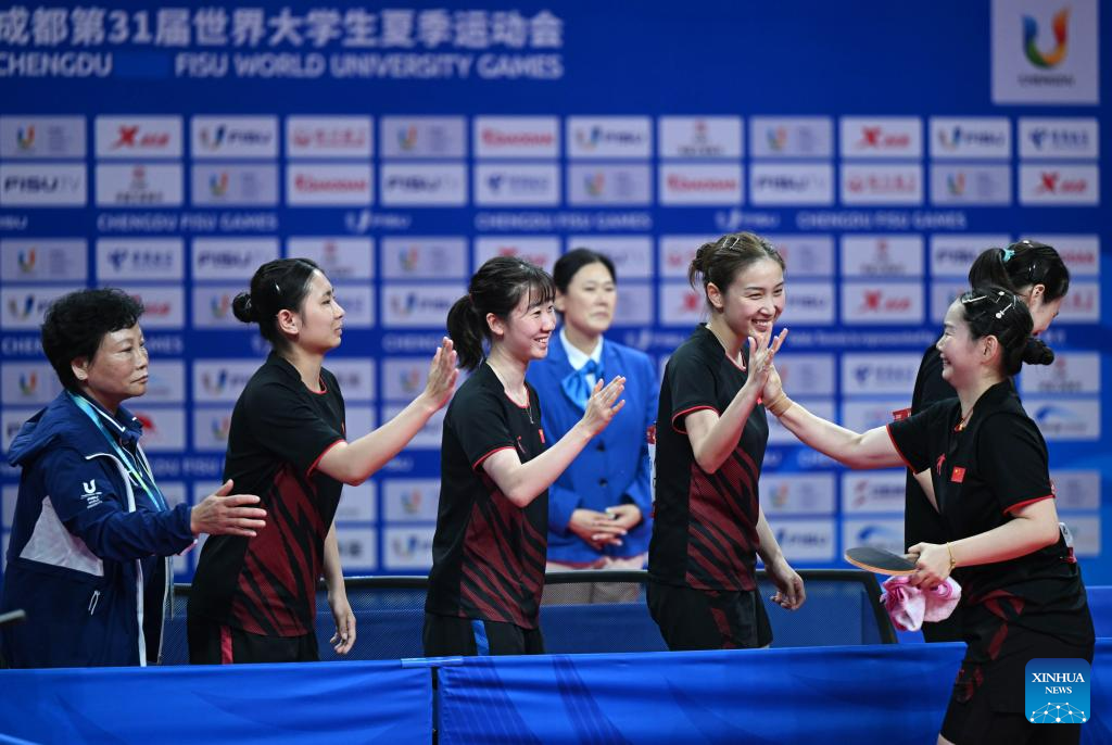 CHENGDU, Aug. 1 (Xinhua) -- China beat Japan 3-2 to claim the table tennis women's team title here on Tuesday, representing the first gold in the sport at the 31st FISU World University Games.