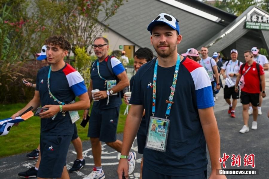 International athletes visit giant panda Zhi Ma, the real image for Rongbao, mascot of the Chengdu Summer Universiade, at the Chengdu Research Base of Giant Panda Breeding in southwest China's Sichuan Province, Aug. 1, 2023. (Photo: China News Service/Zhao Wenyu)