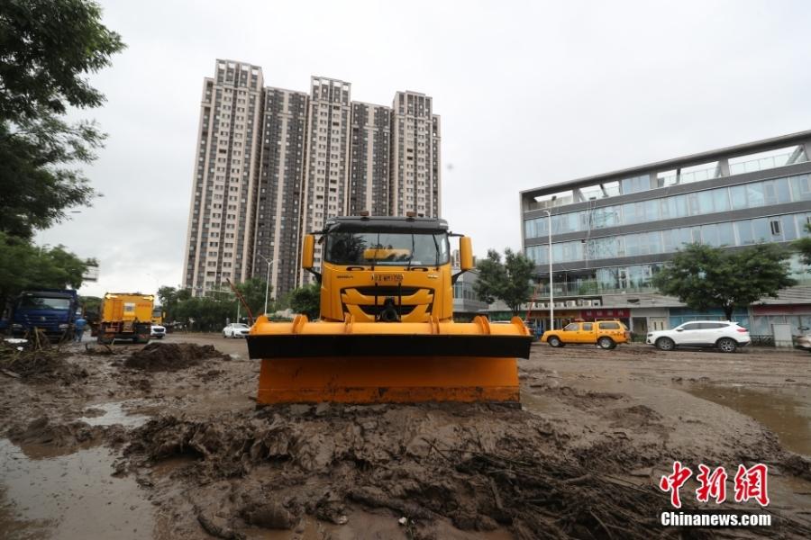 An excavator removes debris in Mentougou district of Beijing, Aug. 1, 2023. (Photo: China News Service/Jia Tianyong)