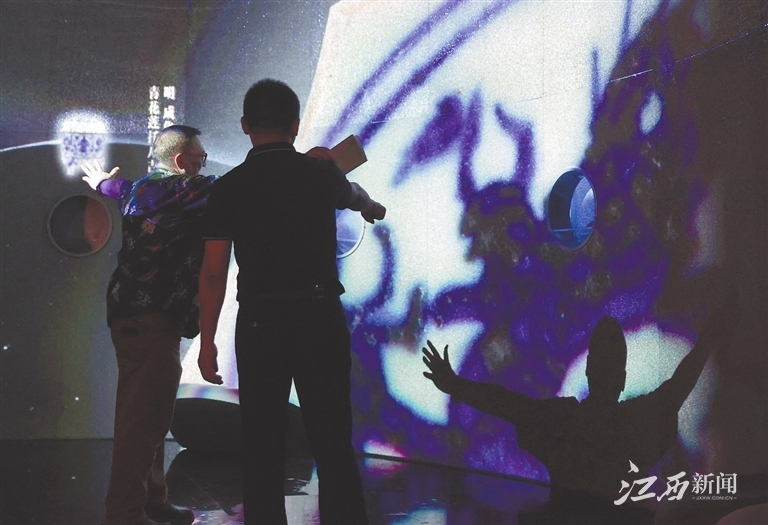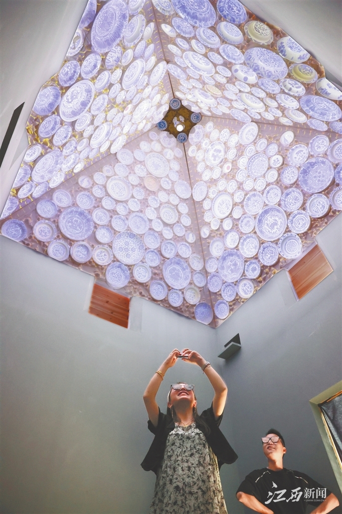 A visitor takes photos of a dome featuring the "gene" information of blue and white porcelain at a scenic area in Jingdezhen city, east China's Jiangxi Province, July 13, 2023. (Photo/jxxw.com.cn)