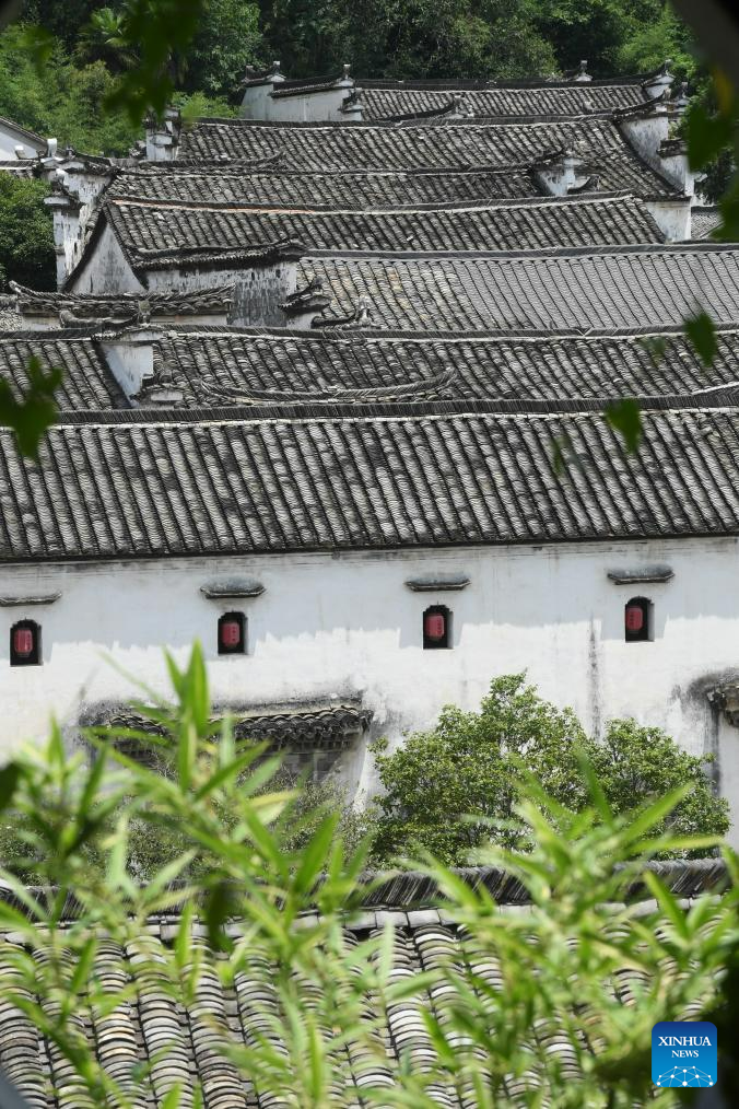 This photo taken on Aug. 1, 2023 shows the ancient buildings at Zhuge Village of Lanxi City, east China's Zhejiang Province. The Zhuge Village, a historic gem with over 300 ancient buildings dating back to Ming and Qing dynasties (1368-1911), is home to descendents of Zhuge Liang, a renowned military strategist in the Three Kingdom Period (220-280). The village has made concerted efforts to preserve the ancient heritages and develop tourism, receiving over 500,000 visitors annually. (Xinhua/Weng Xinyang)