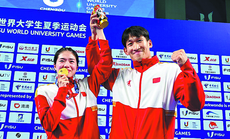Chinese taekwondo ace Liang Jie was probably the happiest athlete at the Chengdu FISU World University Games on Sunday — winning not only a gold medal but also her true love's hand in marriage.