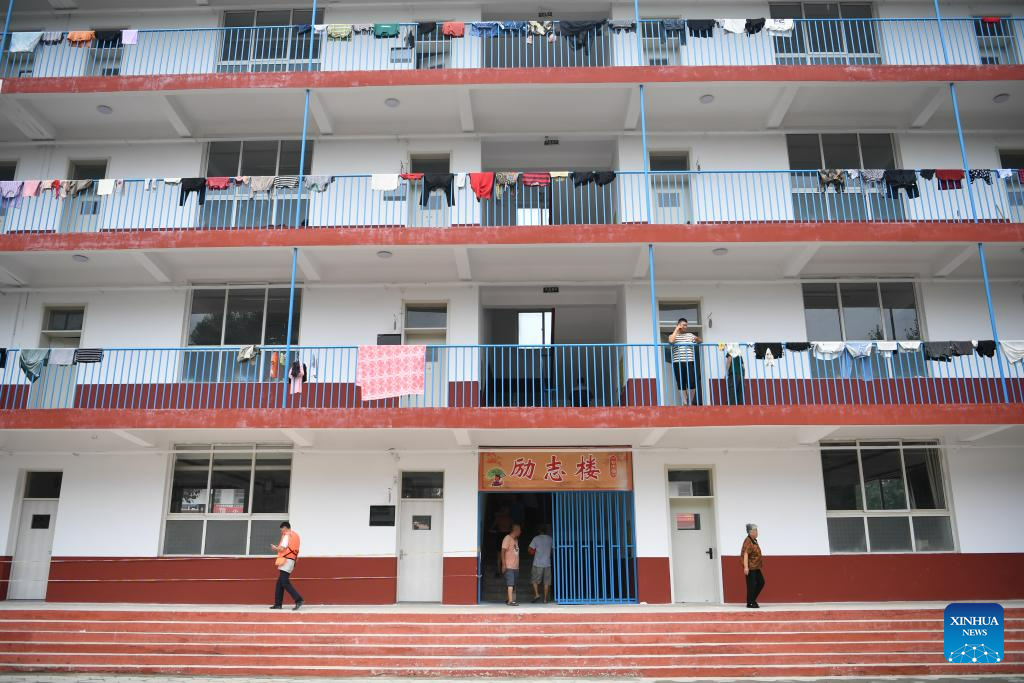 This photo taken on Aug. 3, 2023 shows a settlement site inside a middle school in Zhuozhou, north China's Hebei Province. (Xinhua/Mu Yu)?
