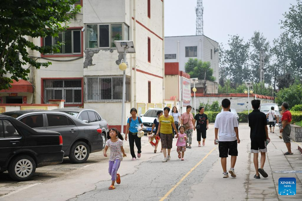 Residents ride an electric tricycle in Gaojiazhuang Village, Matou Town of Zhuozhou, north China's Hebei Province, Aug. 3, 2023. (Xinhua/Mu Yu)