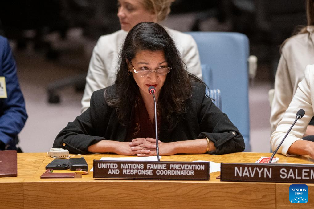 The UN Security Council holds an open debate on famine and conflict-induced global food insecurity at the UN headquarters in New York, on Aug. 3, 2023. UN Famine Prevention and Response Coordinator Reena Ghelani on Thursday called for a reinvigorated multilateral system for peace in order to address the root causes of hunger. (Manuel Elias/UN Photo/Handout via Xinhua)