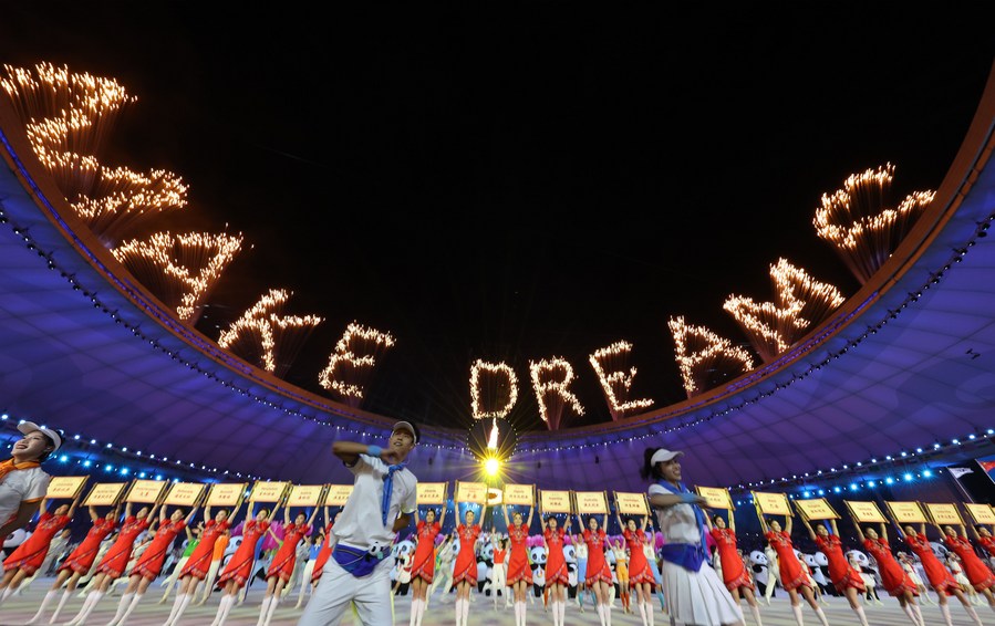 A performance is held during the opening ceremony of the 31st FISU Summer World University Games in Chengdu, southwest China's Sichuan Province, July 28, 2023. (Xinhua/Wang Xi)