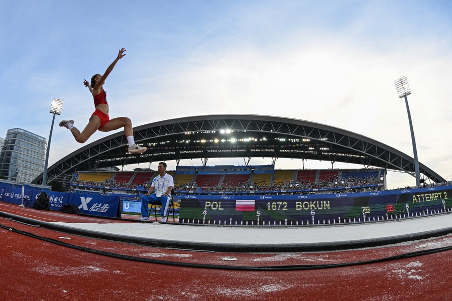 Magdalena Bokun of Poland competes during the women's long jump final at the 31st FISU Summer World University Games in Chengdu, southwest China's Sichuan Province, Aug. 2, 2023. (Xinhua/Wang Xi)