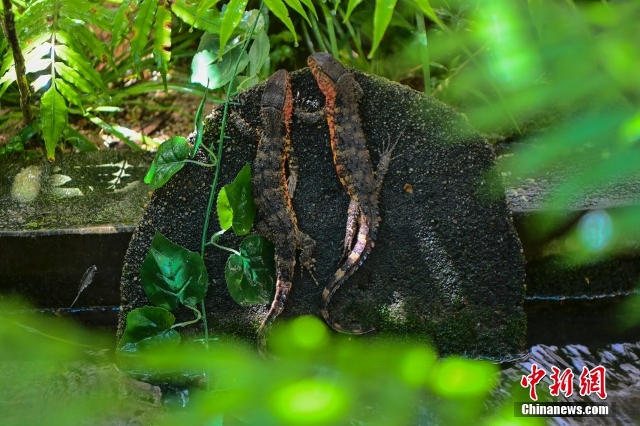 Chinese crocodile lizards in the Chinese crocodile lizard research center of the Luokeng nature reserve in south China's Guangdong Province. (China News Service/Chen Jimin)