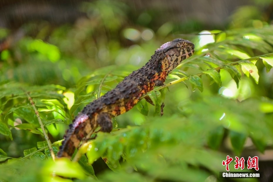 A Chinese crocodile lizard in the Chinese crocodile lizard research center of the Luokeng nature reserve in south China's Guangdong Province. (China News Service/Chen Jimin)