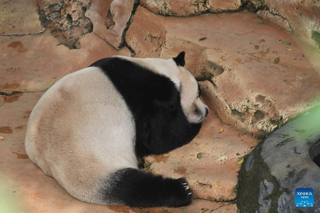 Giant panda Cai Tao is seen during a celebration for his 13th birthday at Taman Safari in Bogor, West Java, Indonesia, Aug. 5, 2023. The giant pandas Cai Tao and Hu Chun from southwest China's Sichuan Province have been living in the safari park since 2017. (Photo by Sandika Fadilah/Xinhua)
