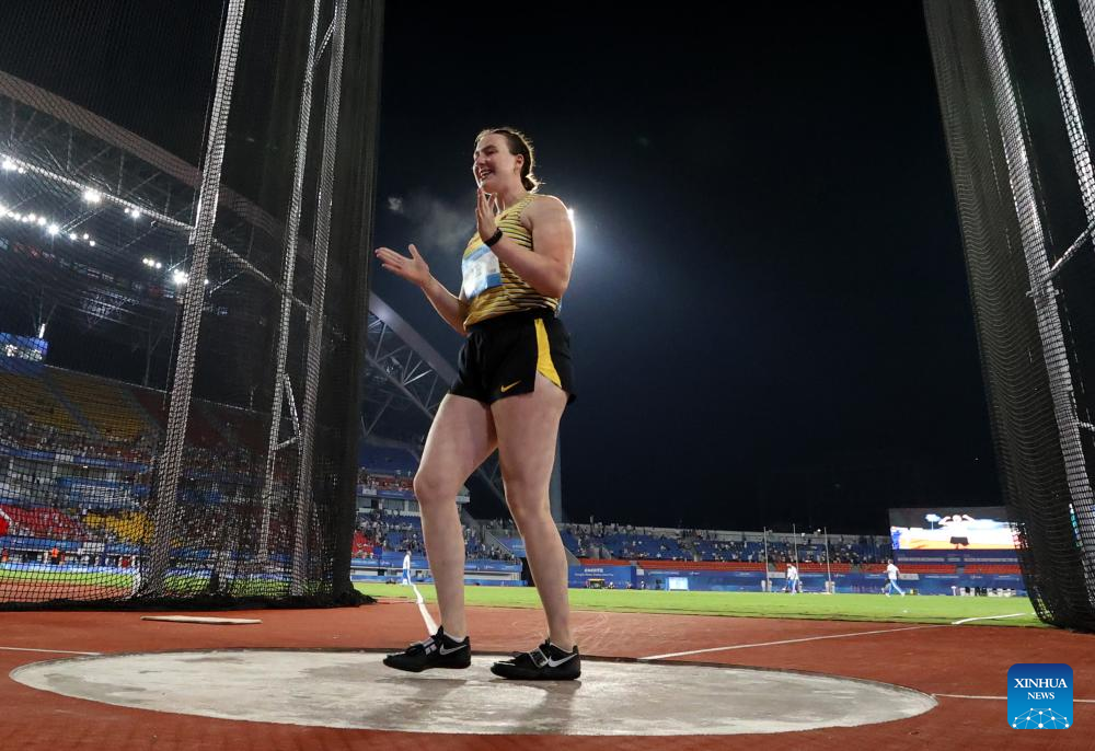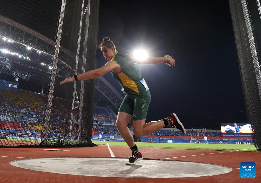 Yolandi Stander of South Africa competes during the athletics women's discus throw final at the 31st FISU Summer World University Games in Chengdu, southwest China's Sichuan Province, Aug. 5, 2023. (Xinhua/Jia Haocheng)