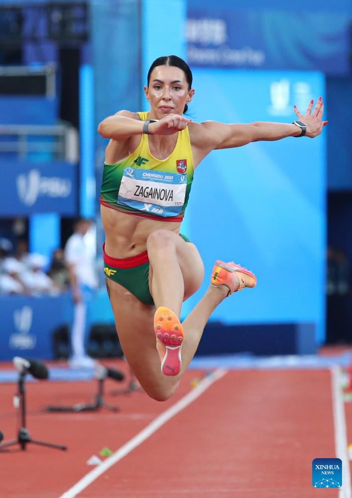 Diana Zagainova of Lithuania competes during the athletics women's triple jump final at the 31st FISU Summer World University Games in Chengdu, southwest China's Sichuan Province, Aug. 5, 2023. (Xinhua/Li Jing)